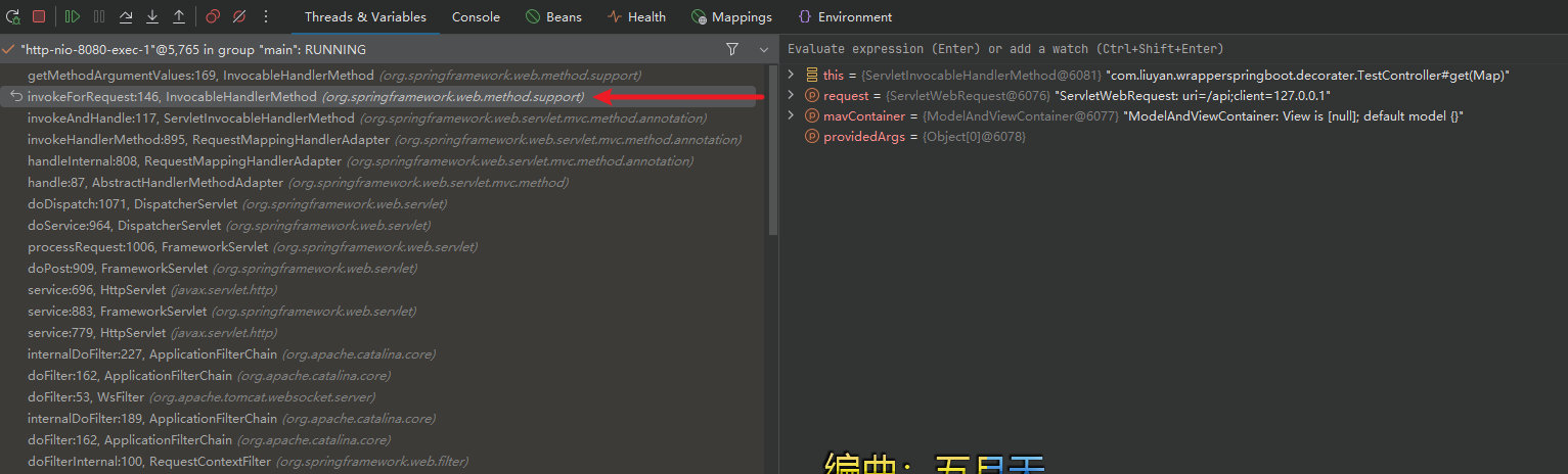 为了实现这个装饰器,我们首先需要知道这里的map是怎么获取到的,这里直接打一个断点进入堆栈,对接口发送图中的请求。